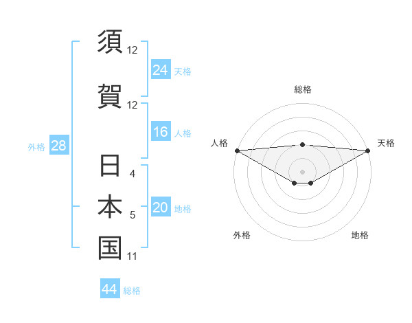須賀 日本国さんを姓名の画数から五運を鑑定