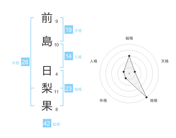前島 日梨果さんを姓名の画数から五運を鑑定