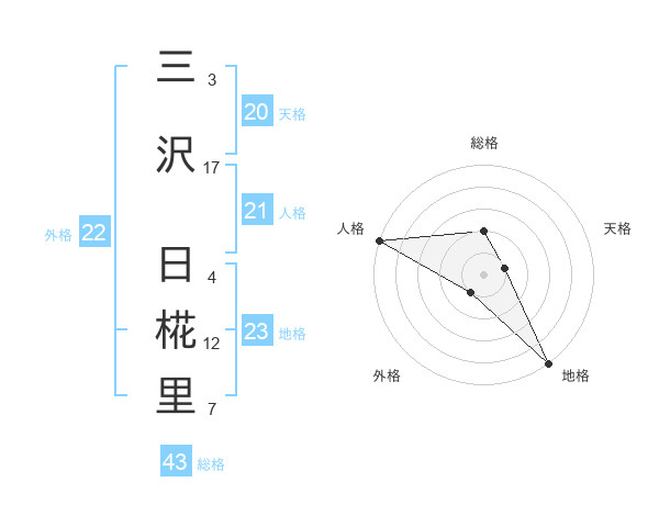 三沢 日椛里さんを姓名の画数から五運を鑑定