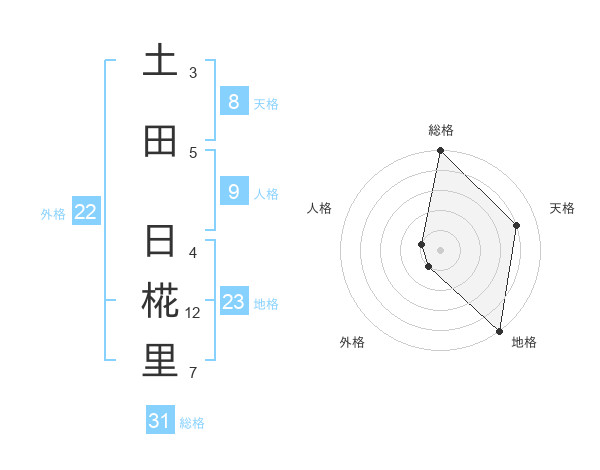 土田 日椛里さんの総格は31画の5点