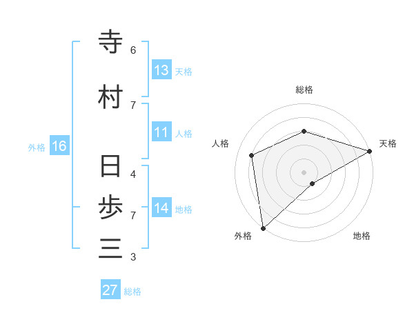 寺村 日歩三さんの総格は27画の3点!