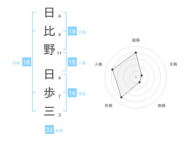 日比野 日歩三さんを姓名の画数から五運を鑑定