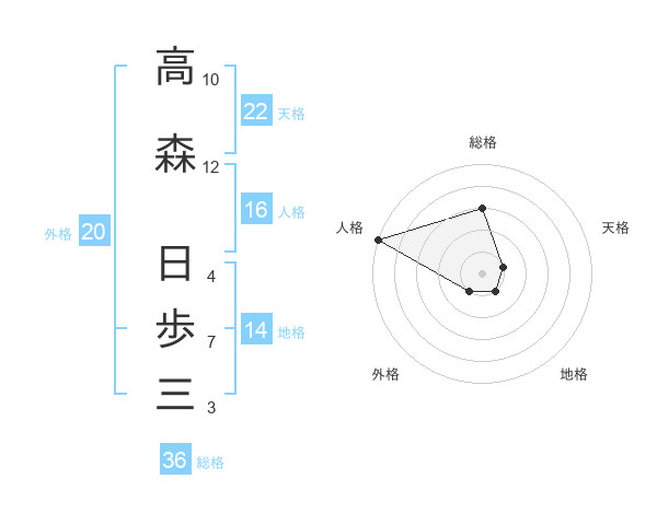 高森 日歩三さんの総格は36画の3点!