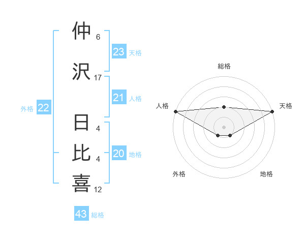 仲沢 日比喜さんを姓名の画数から五運を鑑定