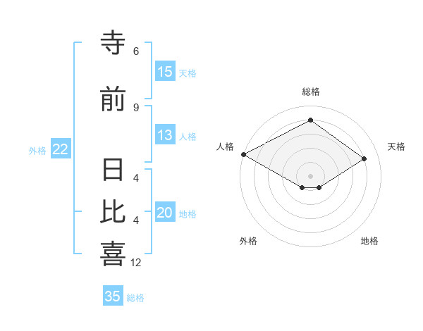 寺前 日比喜さんを姓名の画数から五運を鑑定