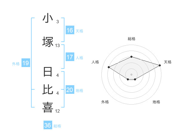 小塚 日比喜さんを姓名の画数から五運を鑑定