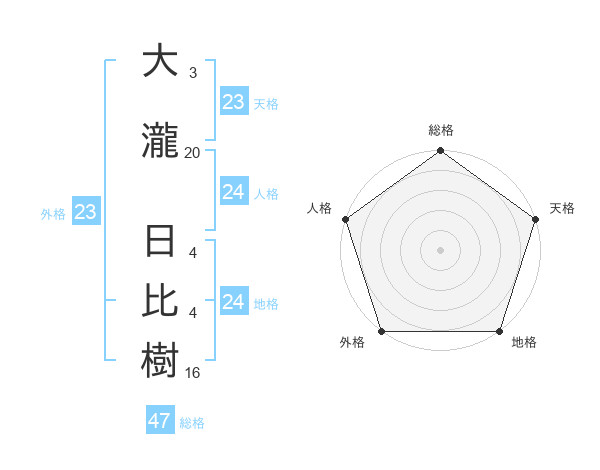 大瀧 日比樹さんを姓名の画数から五運を鑑定
