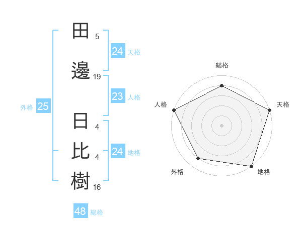 田邊 日比樹さんを姓名の画数から五運を鑑定