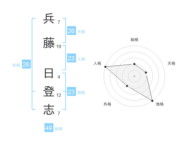兵藤 日登志さんを姓名の画数から五運を鑑定