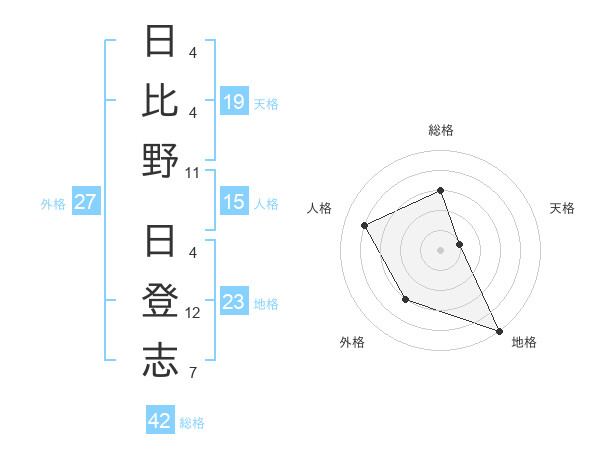 日比野 日登志さんを姓名の画数から五運を鑑定