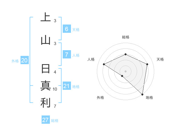 上山 日真利さんの総格は27画の3点