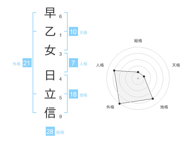 早乙女 日立信さんを姓名の画数から五運を鑑定