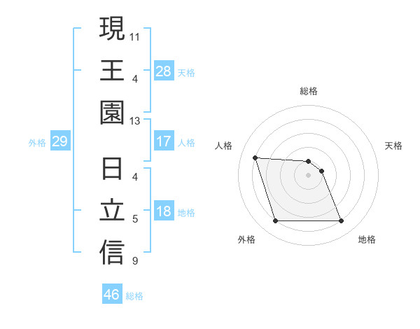 現王園 日立信さんを姓名の画数から五運を鑑定