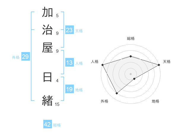 加治屋 日緒さんの総格は42画の3点