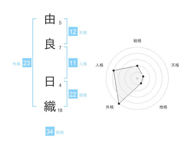 由良 日織さんの外格は23画の5点!