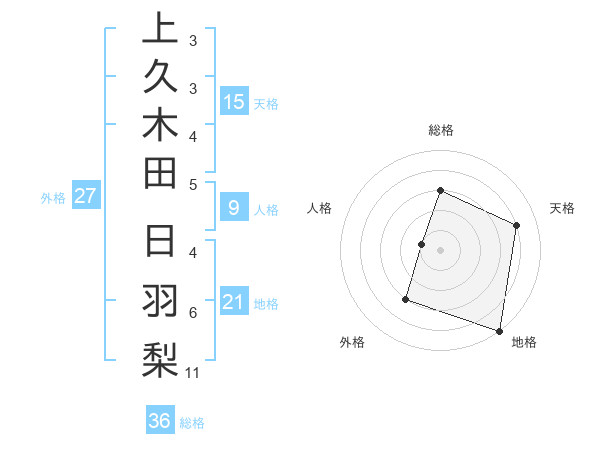 上久木田 日羽梨さんを姓名の画数から五運を鑑定
