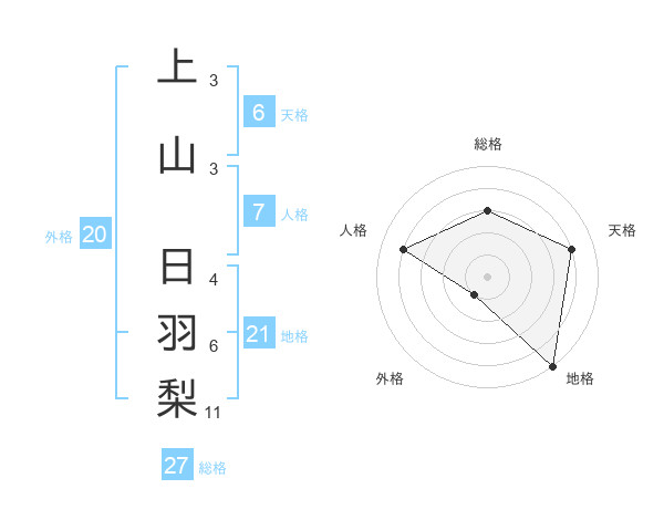 上山 日羽梨さんを姓名の画数から五運を鑑定