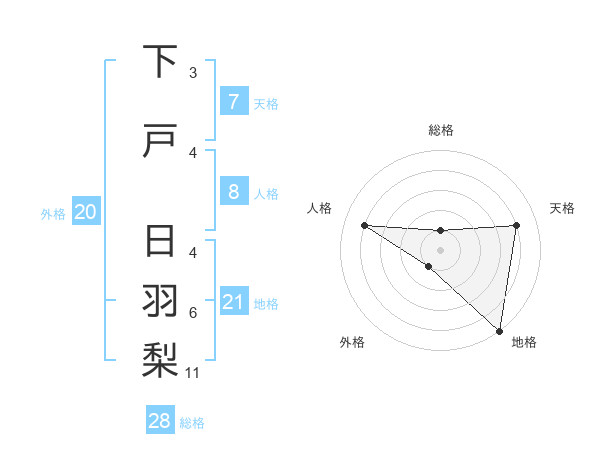 下戸 日羽梨さんを姓名の画数から五運を鑑定