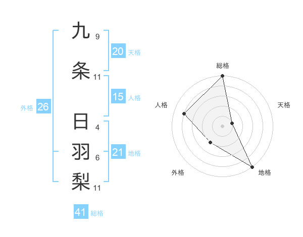 九条 日羽梨さんを姓名の画数から五運を鑑定