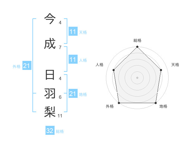 今成 日羽梨さんを姓名の画数から五運を鑑定