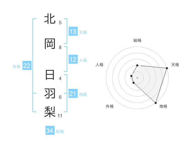 北岡 日羽梨さんを姓名の画数から五運を鑑定