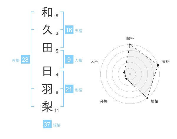 和久田 日羽梨さんを姓名の画数から五運を鑑定