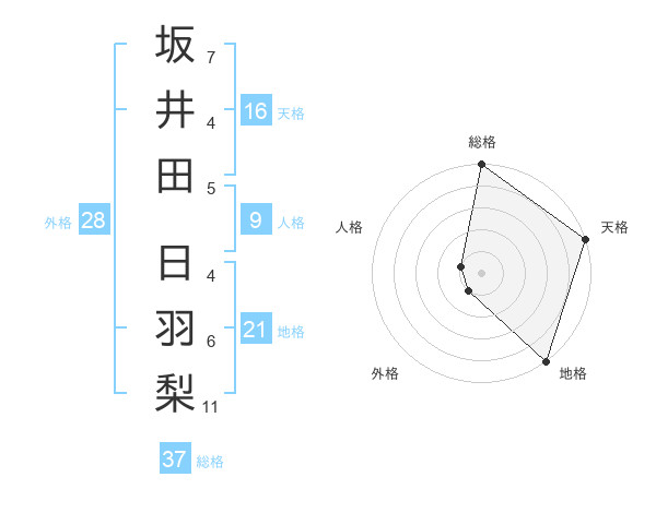 坂井田 日羽梨さんを姓名の画数から五運を鑑定