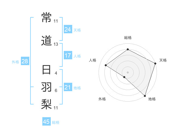 常道 日羽梨さんを姓名の画数から五運を鑑定