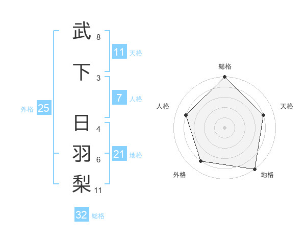 武下 日羽梨さんの総格は32画の5点!