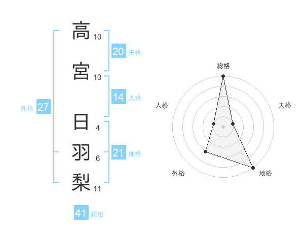 高宮 日羽梨さんを姓名の画数から五運を鑑定