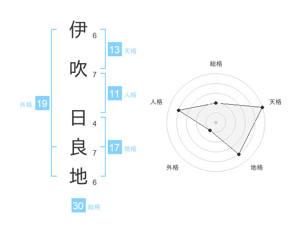 伊吹 日良地さんの天格は13画の5点!