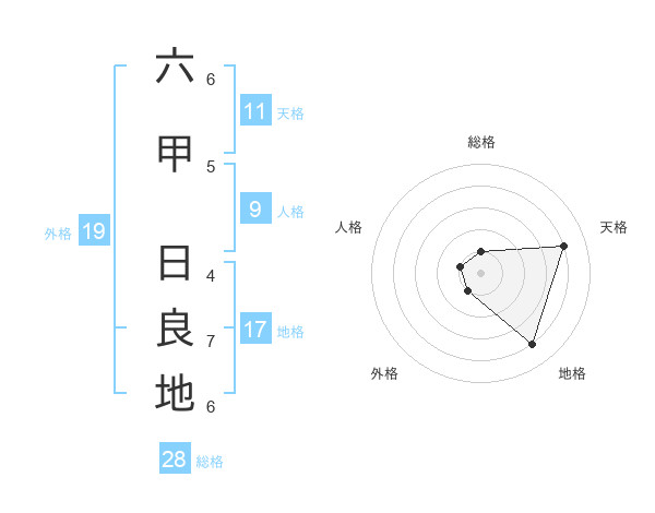 六甲 日良地さんを姓名の画数から五運を鑑定
