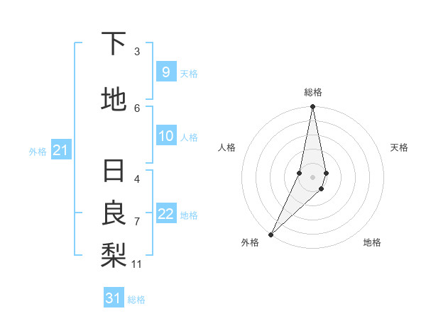 下地 日良梨さんを姓名の画数から五運を鑑定