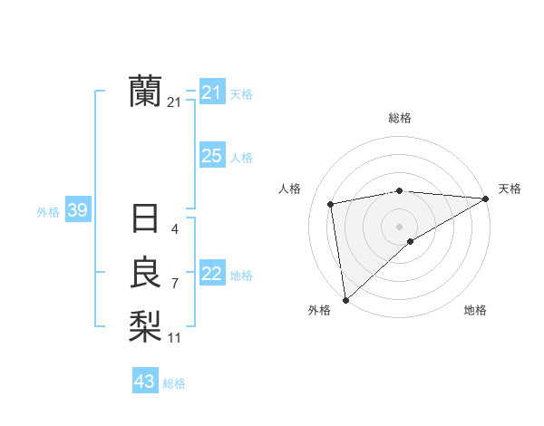 蘭 日良梨さんの天格は21画の5点!