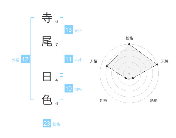 寺尾 日色さんを姓名の画数から五運を鑑定