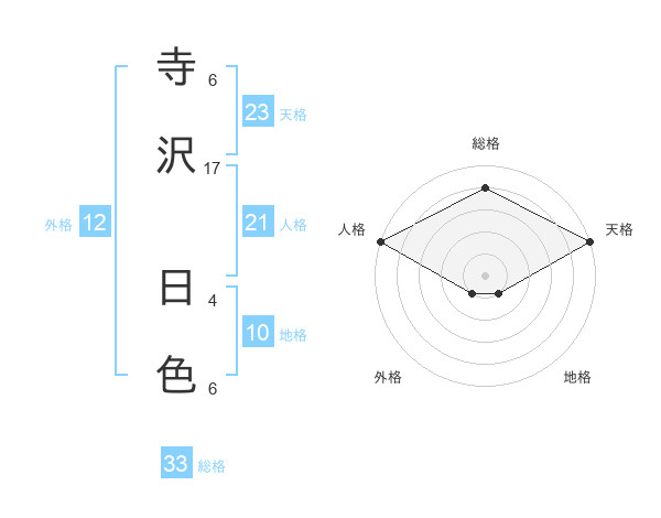 寺沢 日色さんの天格は23画の5点!