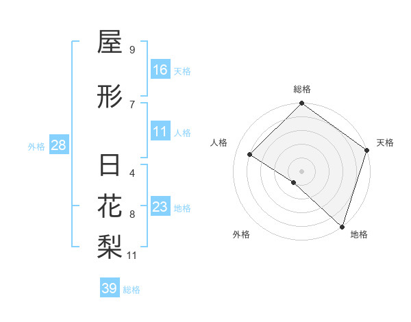 屋形 日花梨さんを姓名の画数から五運を鑑定