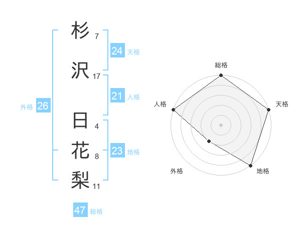 杉沢 日花梨さんを姓名の画数から五運を鑑定