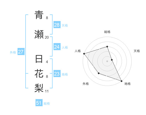 青瀬 日花梨さんの総格は51画の3点!