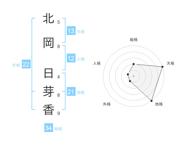 北岡 日芽香さんを姓名の画数から五運を鑑定
