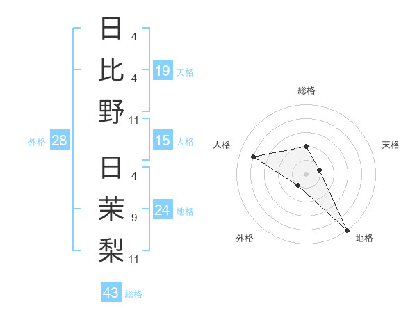 日比野 日茉梨さんを姓名の画数から五運を鑑定