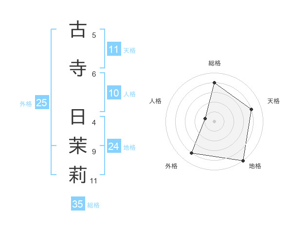 古寺 日茉莉さんを姓名の画数から五運を鑑定