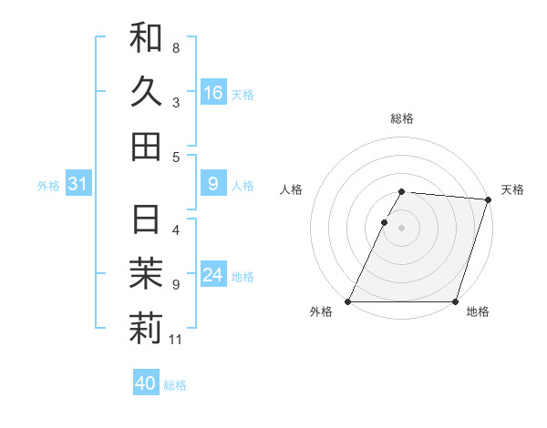 和久田 日茉莉さんを姓名の画数から五運を鑑定