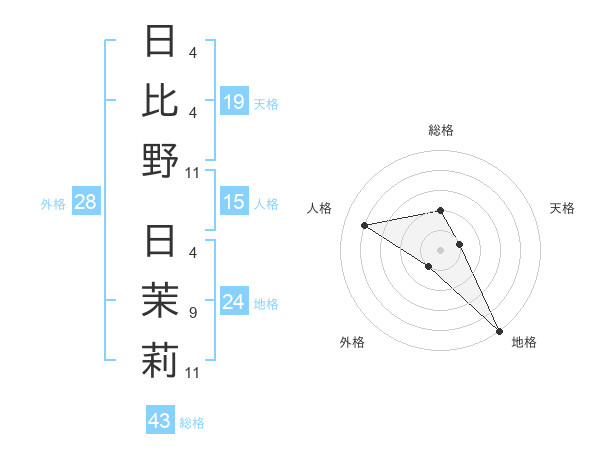 日比野 日茉莉さんを姓名の画数から五運を鑑定