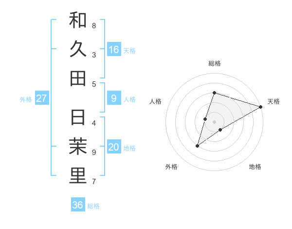 和久田 日茉里さんを姓名の画数から五運を鑑定