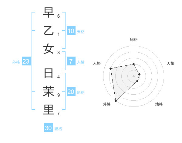 早乙女 日茉里さんを姓名の画数から五運を鑑定