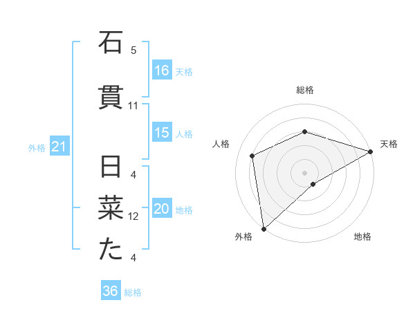 石貫 日菜たさんを姓名の画数から五運を鑑定