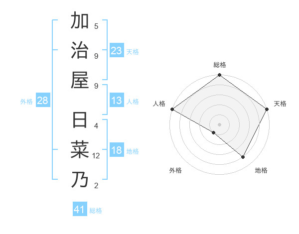 加治屋 日菜乃さんを姓名の画数から五運を鑑定