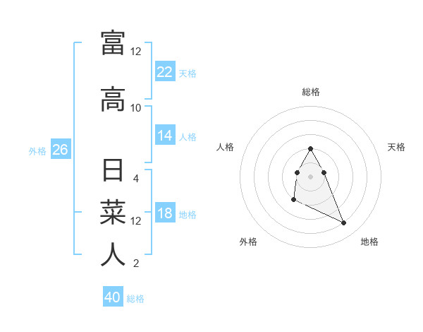 富高 日菜人さんの総格は40画の2点!