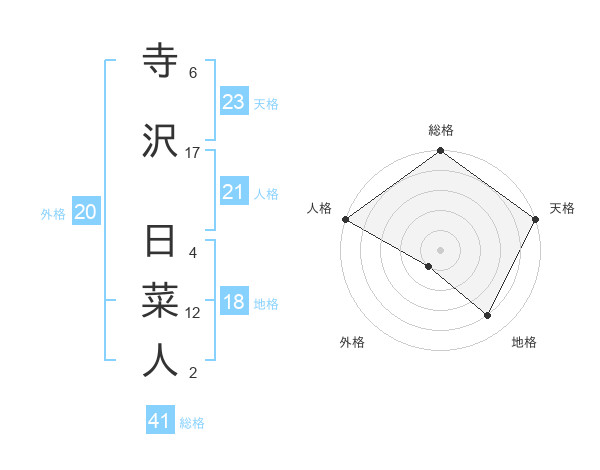 寺沢 日菜人さんの天格は23画の5点!